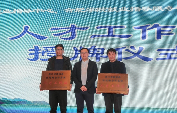 随后,我校和合肥工业大学共同与德清县人社局签订人才智力合作协议,德清县委组织部副部长、人才办常务副主任费征代表德清县向我校和合肥工业大学授予“浙江省德清县驻战略合作高校人才工作站”牌匾。