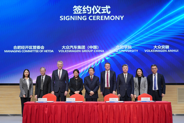 Um die tiefe Integration von Industrie und Bildung, die Zusammenarbeit zwischen den Universitäten und den Unternehmen sowie ein Vorbild für eine Hochschulkooperation im dualen System zu schaffen, fand am 20. Februar im Innovationspark für chinesisch-deutsche Zusammenarbeit in Hefei die feierliche Unterzeichnungs- und Einweihungszeremonie des Volkswagen-Instituts statt. Jens Pfitzinger, exekutiver Vizepräsident der Volkswagen Group (China), Erwin Gabardi, CEO von Volkswagen (Anhui) Co., Ltd, Wang Qidong, Sekretär des Parteikomitees der Universität Hefei, Lu Jun, Mitglied des Ständigen Ausschusses des Parteikomitees der Stadt Hefei, und Chu Changlian, Mitglied des Arbeitsausschusses für Bildung des Parteikomitees der Provinz und stellvertretender Direktor der Bildungsabteilung der Provinz Anhui, nahmen daran teil und hielten Reden. Die Einweihung wurde von Wu Chunmei, Präsidentin der Universität Hefei, moderiert.